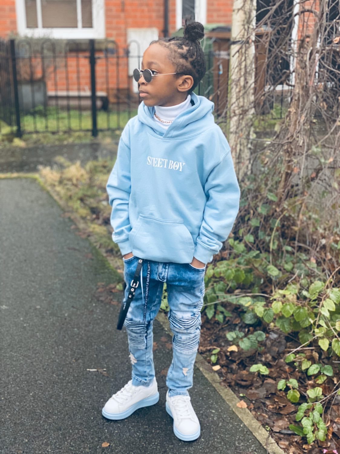 Boys hoodie with front centred Sweet Boy artwork and Rx2 - Rem & Rei artwork on the wrist of the right sleeve.